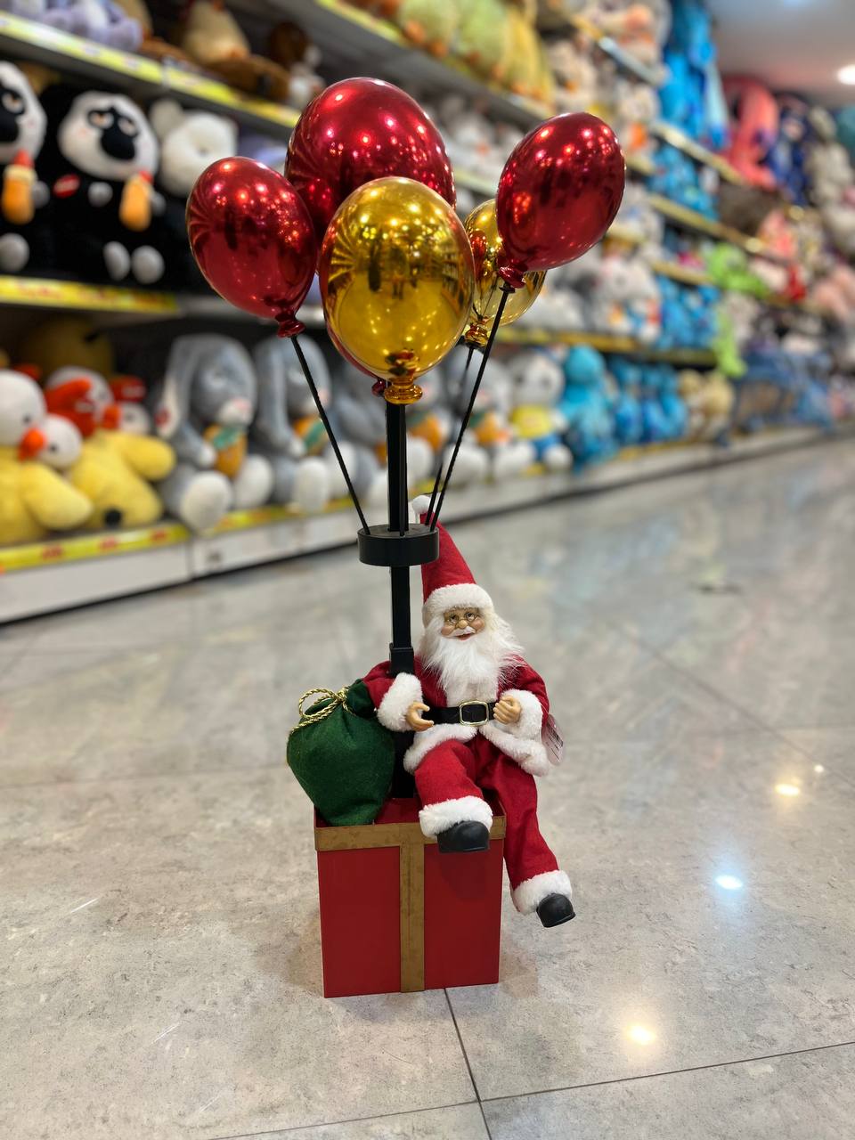 با این محصول بینظیر، حال و هوای کریسمس را به خانهتان بیاورید! بابانوئل دوستداشتنی ما، با ریش سفید بلند و لباس قرمز مخملی، بر روی یک جعبه کادویی زیبا نشسته و آماده است تا با کمک بادکنکهای رنگارنگش، به دنیای شما پرواز کند و شادی و عشق را به ارمغان بیاورد.
