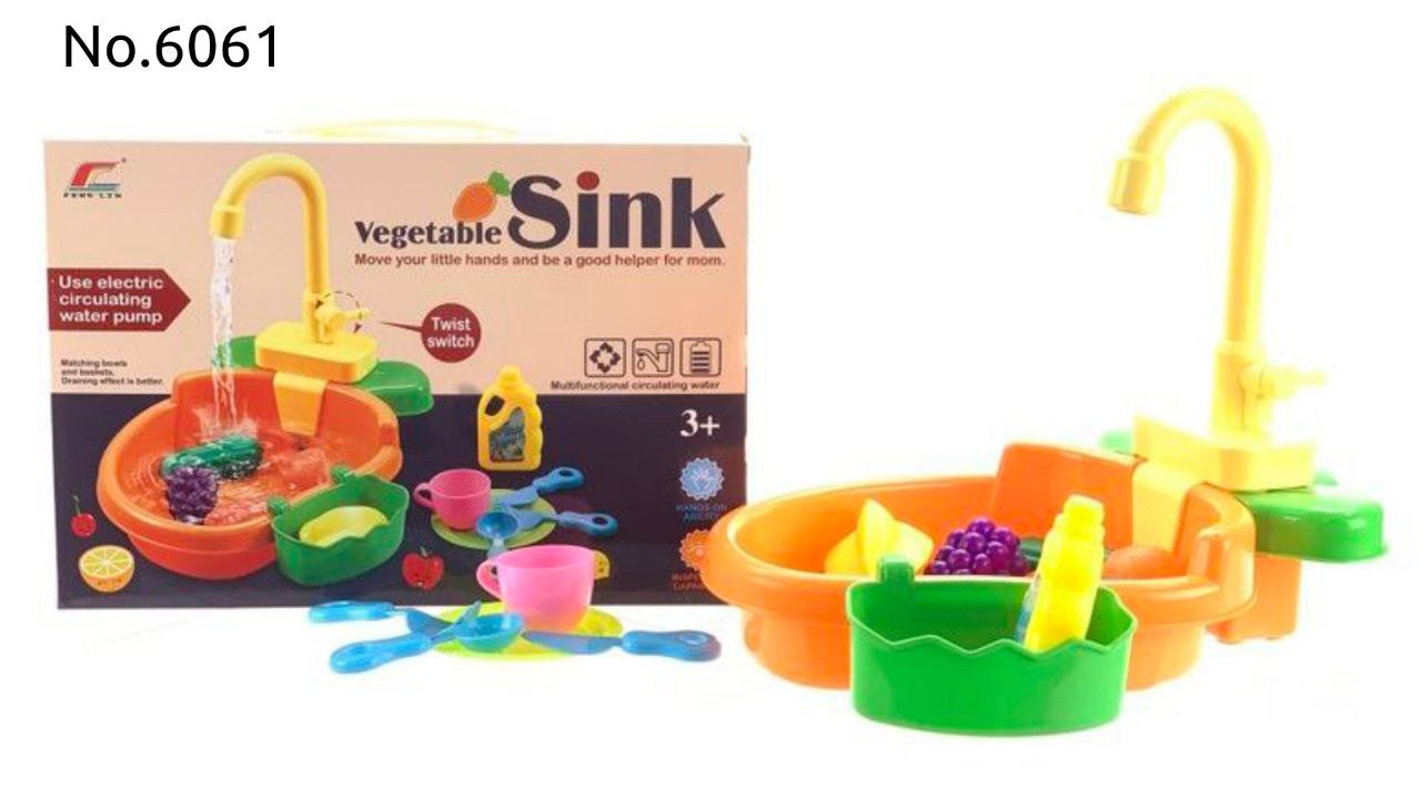 - پمپ آب برقی: این سینک مجهز به پمپ برقی است که با چرخاندن شیر آب، آب را به گردش در میآورد و حس واقعی شستشو را برای کودک تداعی میکند.
