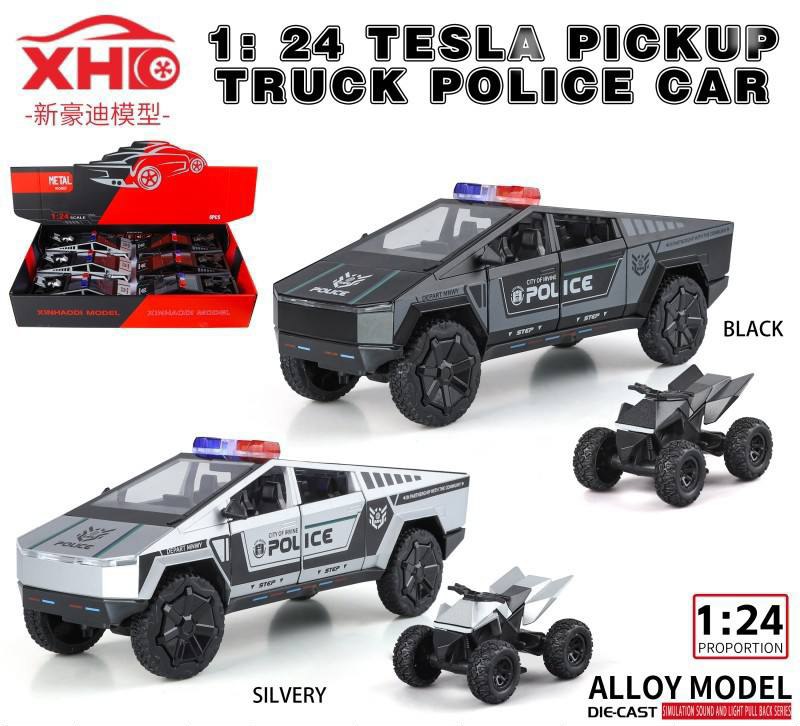 به دنیای ماشینهای اسباببازی فلزی جذاب و باکیفیت خوش آمدید. این مدل دقیق و ظریف از تسلا سایبرتراک، با رنگهای مشکی و نقرهای طراحیشده و به عنوان یک ماشین پلیس واقعی، هر علاقهمندی به کلکسیون یا بازی را شگفتزده میکند.