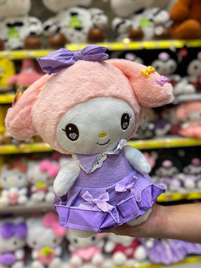 عروسک ملودی پاپیون به سر با لباس بنفش