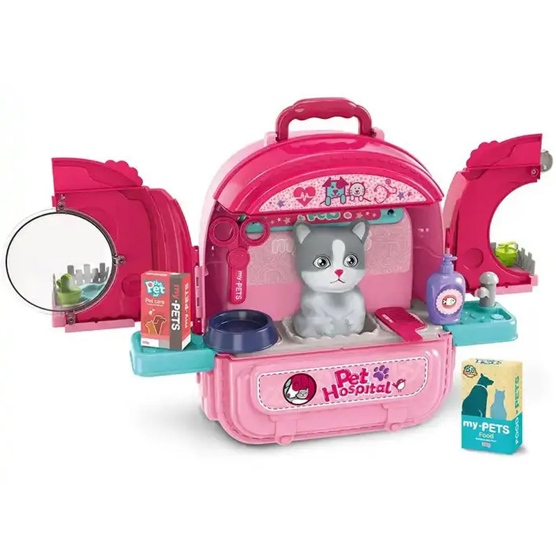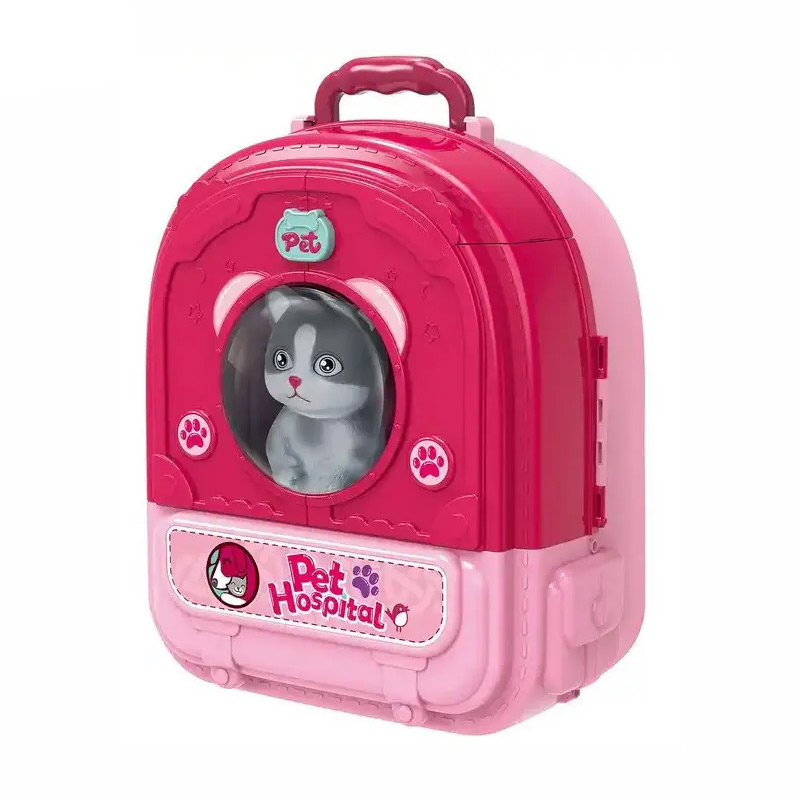 ست پزشکی حیوانات رنگ صورتی با گربه – کیف حیوانات008-997-2