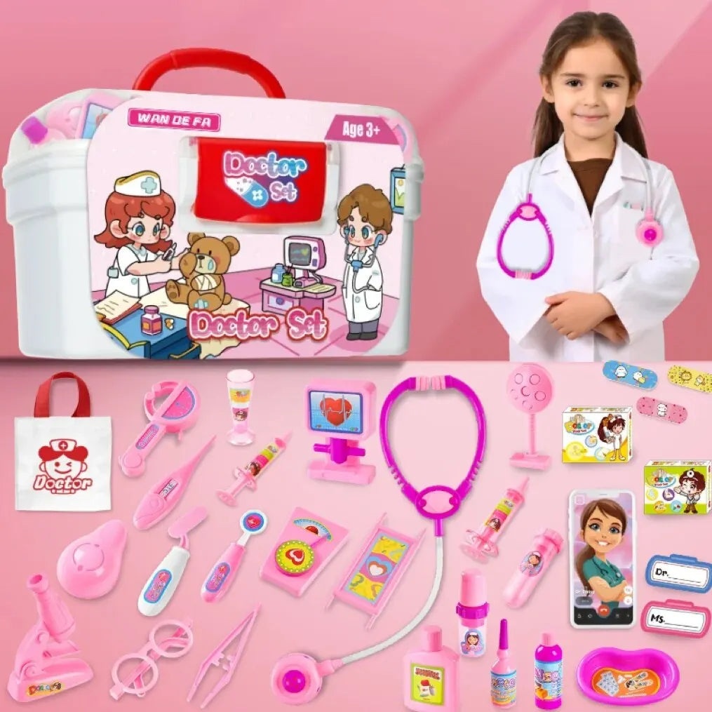 ست پزشکی حیوانات رنگ صورتی با خرگوش – کیف حیوانات