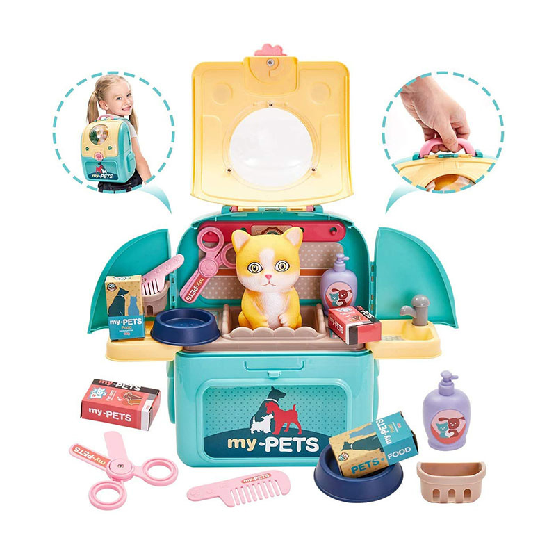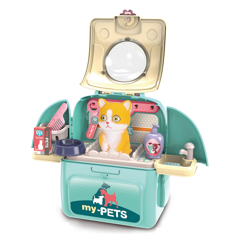 ست پزشکی حیوانات رنگ آبی با گربه – کیف حیوانات