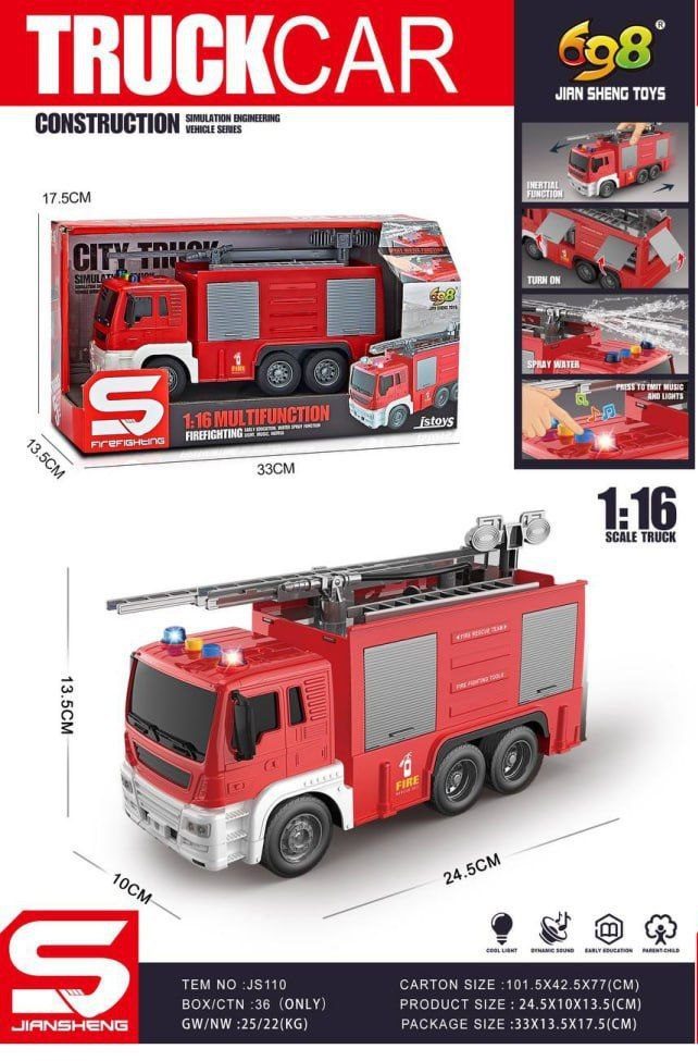 آتش نشانی موزیکال آبپاش 1:16 آیتم JS110: هیجان ماموریتهای آتشنشانی در دستان کوچک شما!