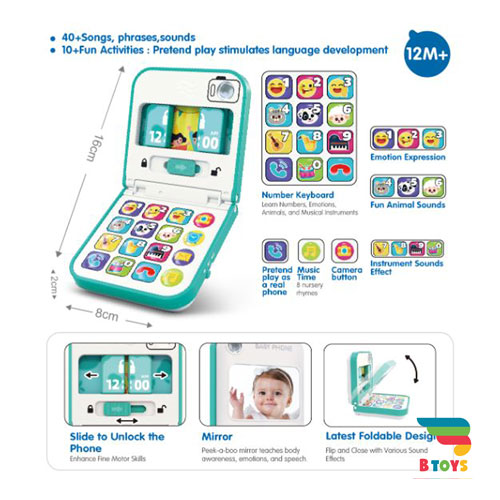این اسباب بازی موبایل، فراتر از یک وسیله بازی ساده است. صفحه کلید دکمهای با طرحهای مختلف و رنگارنگ، نه تنها به تقویت حس لامسه و مهارتهای حرکتی ظریف کودک کمک میکند، بلکه او را با اعداد، شکلها و تصاویر گوناگون آشنا میسازد.