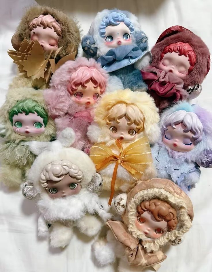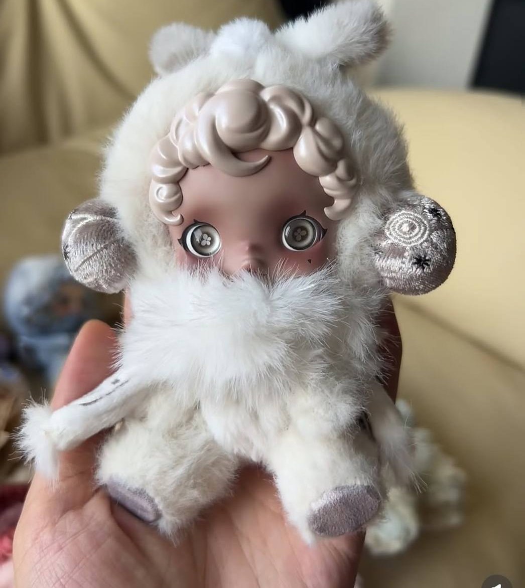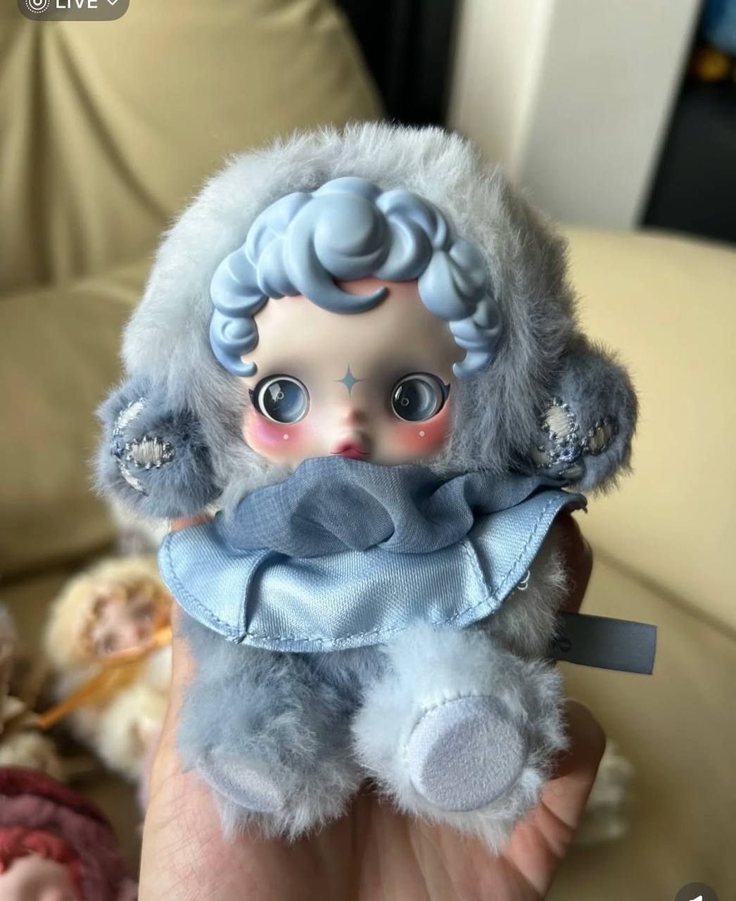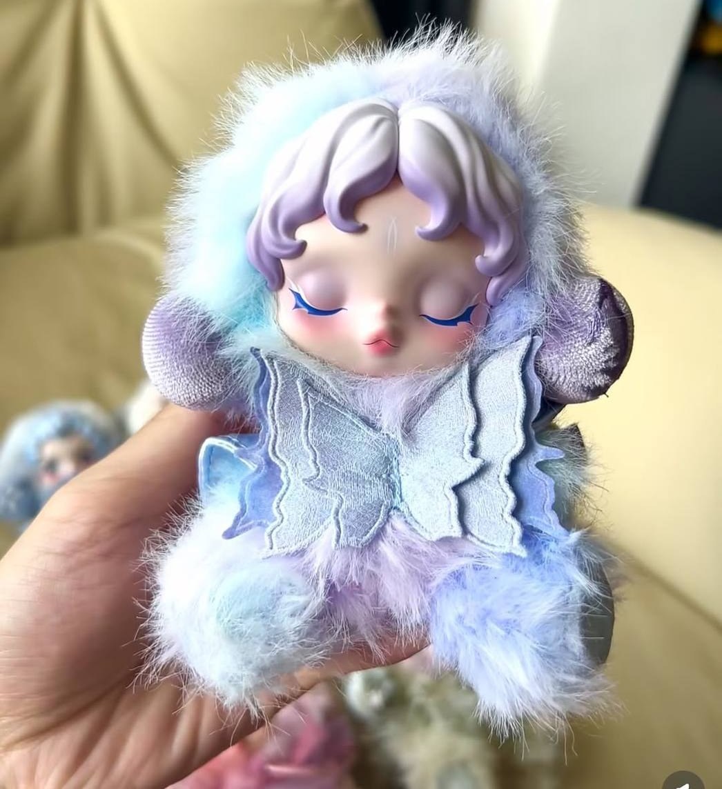 این عروسک کلکسیونی، با طراحی منحصربهفرد و رنگهای ملایم بنفش و آبی، نه تنها یک اسباب بازی، بلکه یک اثر هنری ظریف است. با نگاه به چشمان بسته و چهره معصومش، گویی به دنیای رویاها سفر میکنید. پوشش پشمی و لطیف آن، حس آرامش و دلپذیری را القا میکند و شما را دعوت به نوازش این موجود دوستداشتنی میکند.