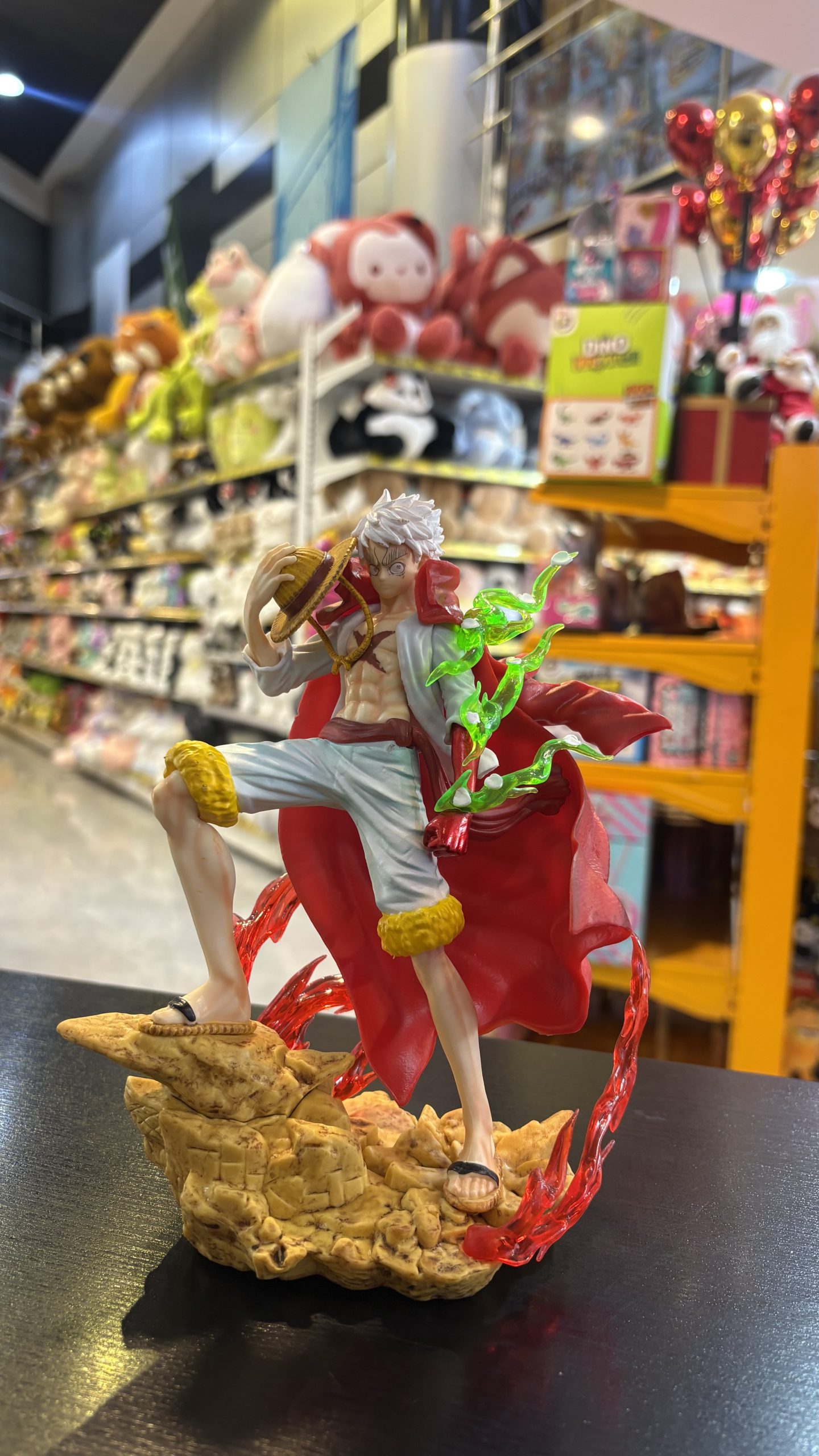 این فیگور لوفی، بر روی یک پایه صخرهای مستحکم قرار گرفته که با جزئیات دقیق طراحی شده و حس پایداری و استقامت را به مخاطب منتقل میکند. این مجسمه نه تنها یک اسباب بازی، بلکه یک اثر هنری است که میتواند به عنوان یک دکور خاص در اتاق، دفتر کار یا کلکسیون شخصی شما بدرخشد.