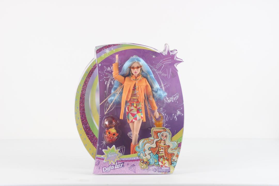 باربی دفا لوسی 8494، یک عروسک فراتر از یک اسباب بازی ساده است؛ یک همراه دوست داشتنی برای دختران است که با طراحی منحصر به فرد و جزئیات جذاب، دنیایی از تخیل و خلاقیت را برایشان به ارمغان می آورد. این عروسک با موهای آبی رنگ رویایی، استایل جذاب و مدرن با کت نارنجی رنگ، دامن کوتاه طرح دار، عینک آفتابی شیک و اکسسوری های خاص، نه تنها یک عروسک زیبا، بلکه نمادی از مد و فشن نیز محسوب می شود.