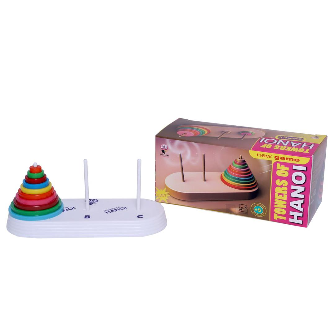 روایت است که تاریخچه بازی برج هانوی به افسانه ای از هندوستان باز می گردد. در یکی از معابر هندوستان ۳ ستون وجود داشت که یکی از آن ها حاوی حلقه هایی بود و کاهنان معبد در تلاش بودند تا حلقه ها را از یک ستون به ستون دیگر تحت شرایطی انتقال دهند و باور داشتند که با جابجایی این حلقه ها، دنیا به پایان خواهد رسید. این وسیله بازی مناسب برای کودکان بالای ۵ سال می باشد که باعث تقویت حافظه،خلاقیت،حل مسئله و افزایش دقت و تمرکز در کودک می شود.