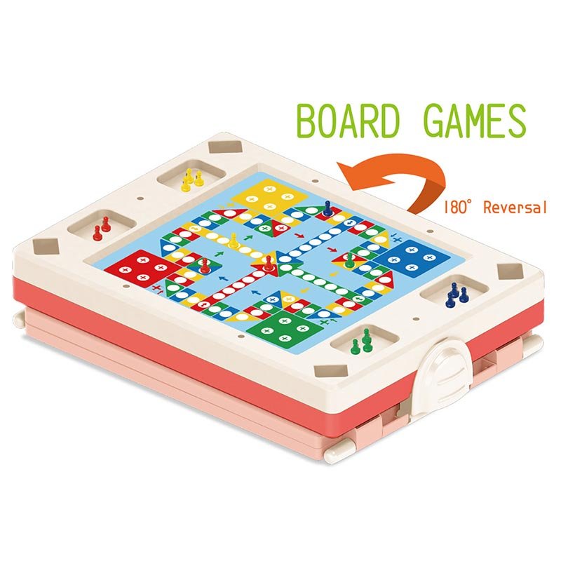 این تخته نقاشی دو طرفه به همراه صفحه بازی یک اسباب بازی کاربردی و زیبا برای کودکان 3 سال به بالا است. در یک طرف این تخته، تخته وایت برد و در طرف دیگر تخته سیاه گچی قرار دارد که با ماژیک و گچی که در بسته بندی قرار داره میتونین راحت نقاشی کنین یا درس بخونین روی این تخته بچه گانه. تازه! هروقت هم خسته شدین میتونین تخته دو طرفه رو جمع کنید و آن را بچرخانید تا بر روی صفحه بازی، حسابی بازی کنید و خوش بگذرانید. صفحه ای که تخته روش قرار گرفته هم دارای دو سمت با بازی های مار پله و منچ هست. میتونین به راحتی پایه های میز رو در بیارین و از صفحه اش به طور جداگانه برای بازی گروهی استفاده کنین. این تخته نقاشی چند کاره به راحتی جمع میشه و هر جایی که بخواین میتونین اون رو با خودتون حمل کنین. تخته دو طرفه بر میز بازی و 4 پایه قرار گرفته که دارای مونتاژ بسیار آسان می باشد. این تخته دارای یک بسته 12 عددی گچ، 5 عدد ماژیک، تخته پاک کن، نگهدارنده گچ، اسباب بازی منچ، صفحه بازی منچ و صفحه بازی مارپله می باشد. این تخته نقاشی کودک کامل، هم برای بازی و هم برای آموزش ایده آله!