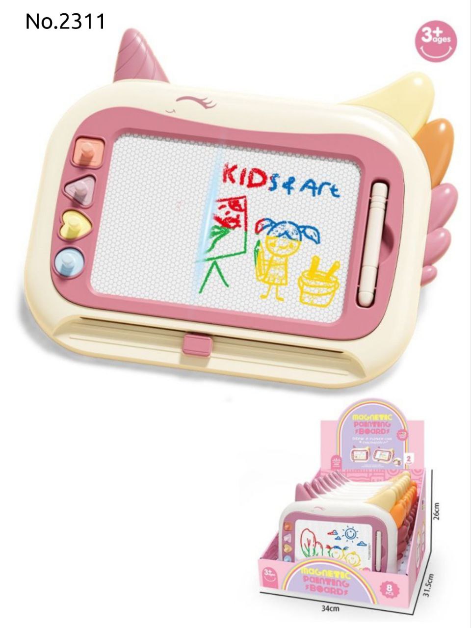 تخته وایت برد مغناطیسی طرح تک شاخ 2311، هدیه ای ایده آل برای کودکان است که می تواند ساعت ها آنها را سرگرم کند و به رشد و شکوفایی استعدادهایشان کمک کند. با این تخته وایت برد، کودک شما می تواند به راحتی نقاشی بکشد، بنویسد، تمرین کند و خلاقیت خود را به نمایش بگذارد.