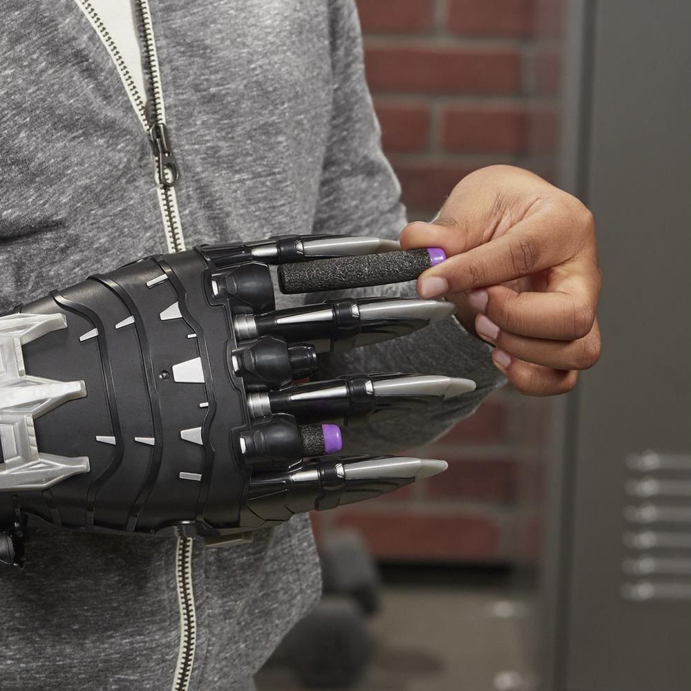 دستکش بلک پنتر این امکان رو به شما میده که درست مثل اون مبارزه کنید و پیروز میدان نبرد بشین. تیرهای فومی نرف رو از جلو داخل دستکش بذارید و نشان مخصوص بلک پنتر رو به سمت خودتون بکشید. حالا فقط کافیه که دستتون رو پشت سر ببرید و با یه حرکت سریع، همزمان با فشردن دکمه، دستکش رو به سمت هدف نشونه بگیرید.