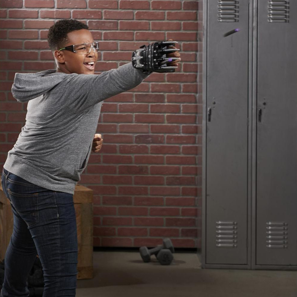 بلک پانتر یکی از شخصیتهای ابرقهرمان کمپانی مارول است . دستکش بلک پانتر این امکان رو به شما میده که درست مثل اون مبارزه کنید و پیروز میدان نبرد بشین.تیر فومی نرف رو داخل دستکش قرار بدین و خودتون رو آماده پرتاب کنید. حالا فقط کافیه که دستتون رو پشت سر ببرید و با یه حرکت سریع ، همزمان با فشردن دکمه ، دستکش رو به سمت هدف نشونه بگیرید.