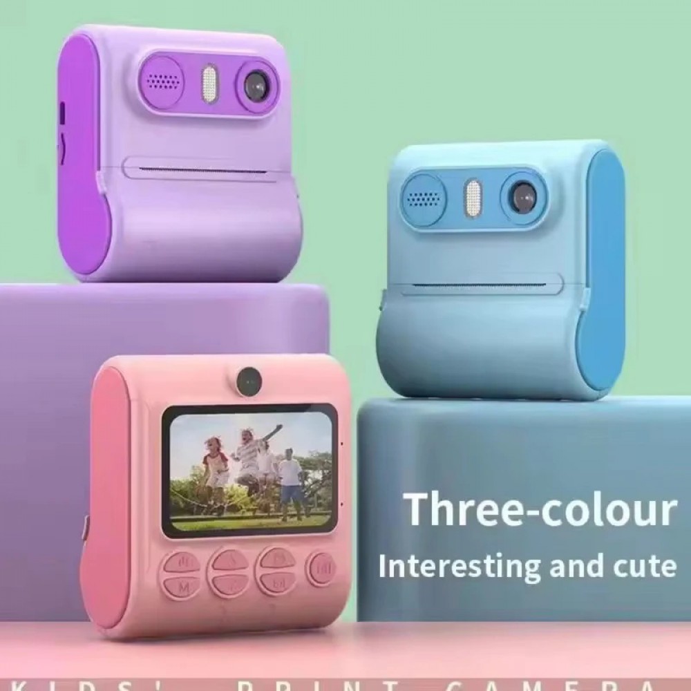 یک دوربین دیجیتال مجهز به پرینتر همه جم و جور در PHOTO PRINTING CAMERA LK-001 دوربین پرینتر دار گودکانه در سه رنگ آبی صورتی وبنفش همراه پک کادویی با به کاغذ رول مخصوص چاپ عکس در لحظه میباشد .