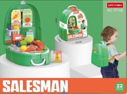 درون این کوله پشتی، مجموعهای از میوهها و سبزیجات پلاستیکی با کیفیت، یک صندوق فروشگاهی کوچک و برچسبهای قیمت جذاب قرار دارد. کودک شما میتواند نقش یک میوه فروش مهربان را بازی کند، با مشتریان فرضی تعامل داشته باشد و مهارتهای اجتماعی و زبانی خود را تقویت کند.