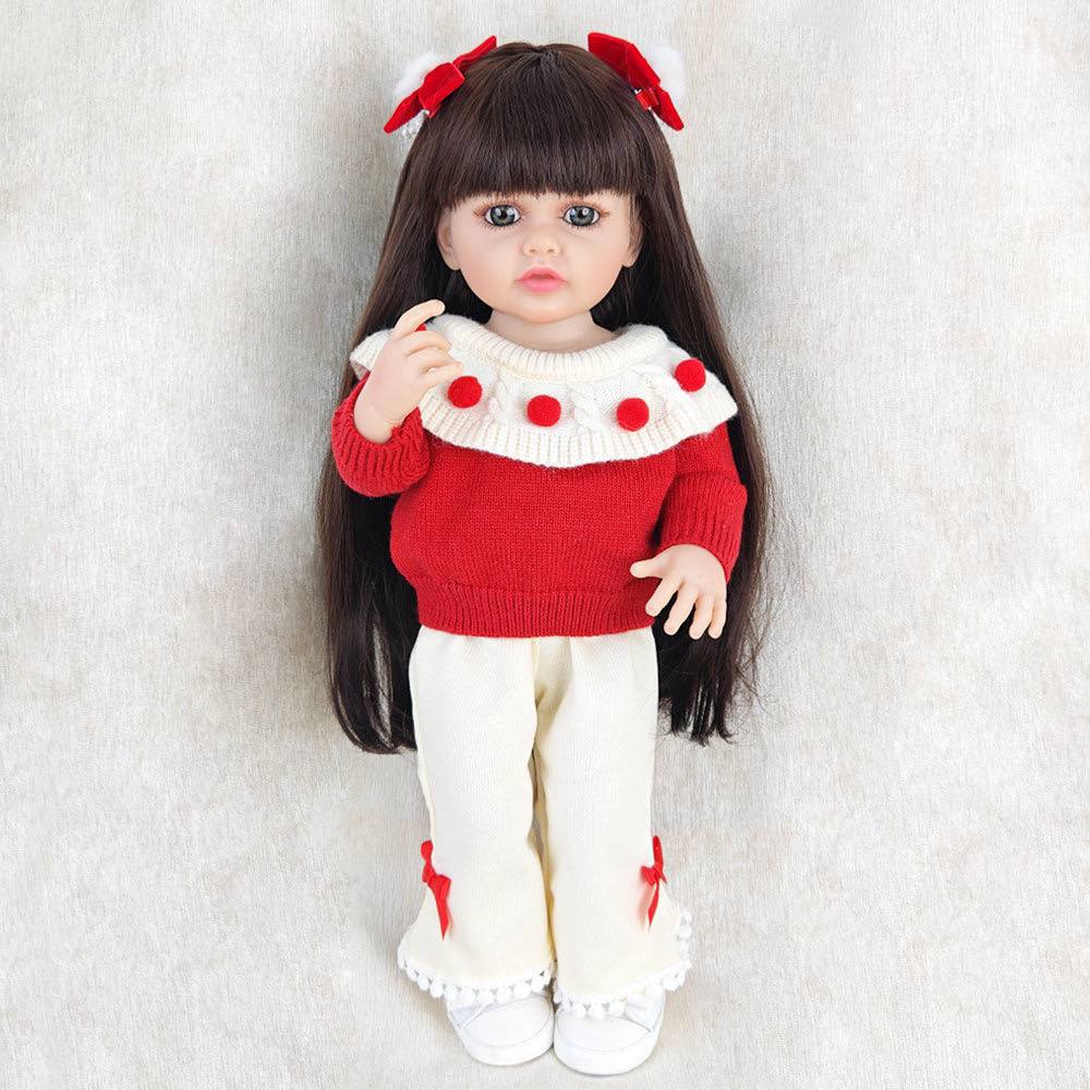 - طراحی واقعگرایانه: جزئیات دقیق صورت، چشمها و اندام، این عروسک را به یک اثر هنری تبدیل کرده است. موهای بلند و خوشرنگ به همراه گیرههای زیبای پاپیونی، جذابیت آن را دوچندان کردهاند.