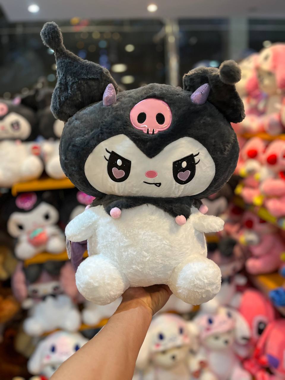 این عروسک با الهام از شخصیت محبوب کرومی، با رنگهای تیره و روشن و کنتراست جذاب، در نگاه اول دل میبرد. پوزه سفید و نرم در کنار صورت تیره رنگ با یک جمجمه صورتی رنگ، ظاهری خاص و جذاب به آن بخشیده است. چشمان درشت با مردمکهای قلبی شکل، لبخند کوچک و گوشهای دوستداشتنی، همه و همه در کنار هم این عروسک را به یک موجود دوستداشتنی و مهربان تبدیل کردهاند.