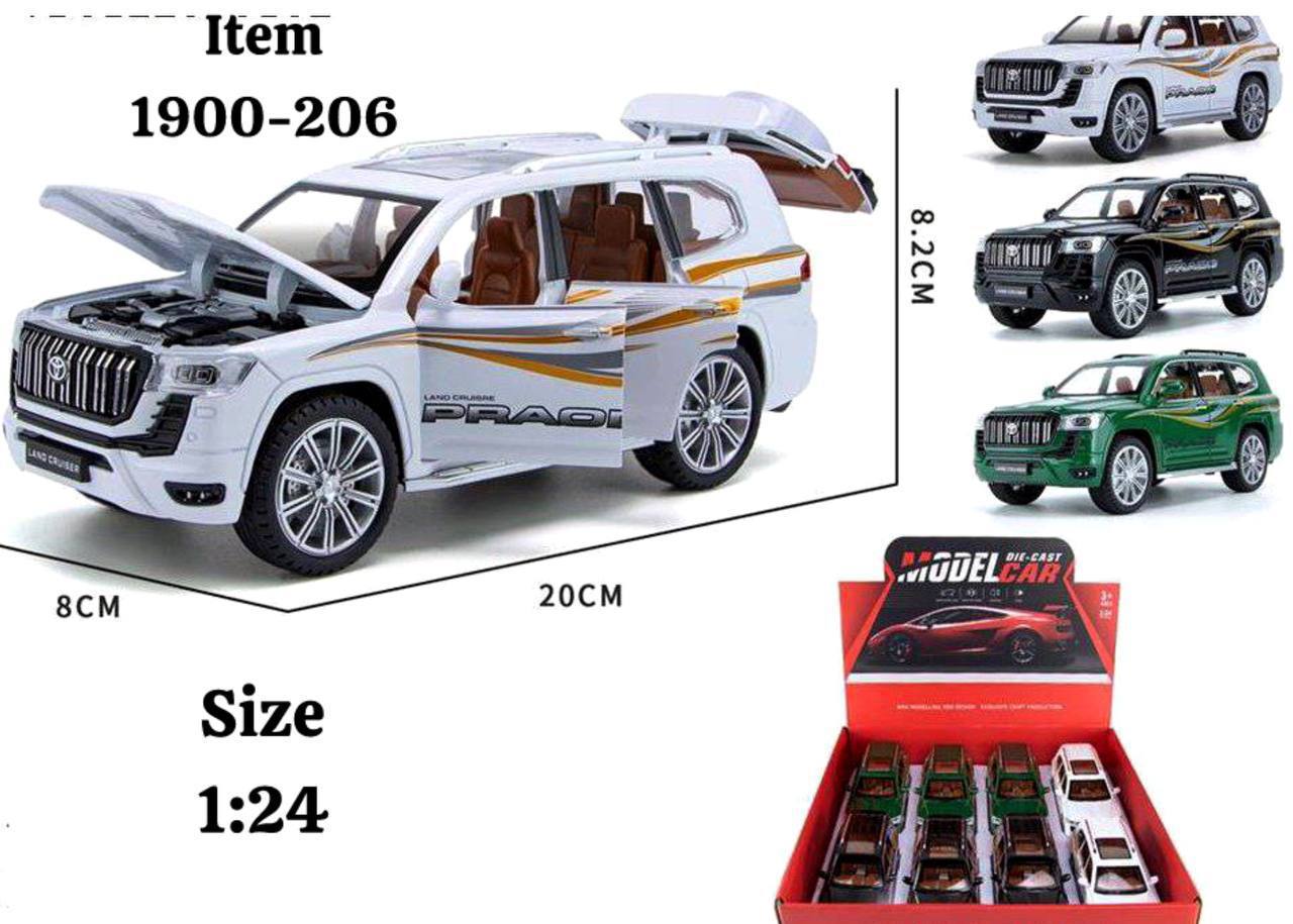 - طراحی دقیق و ظریف: این ماکت، با مقیاس 1:24، با ظرافت تمام طراحی شده و جزئیات نمونه واقعی پرادو را به نمایش میگذارد. باز شدن دربها و کاپوت، جذابیت آن را دوچندان میکند و فرصتی برای کشف دنیای درون این خودروی شاسیبلند فراهم میکند.