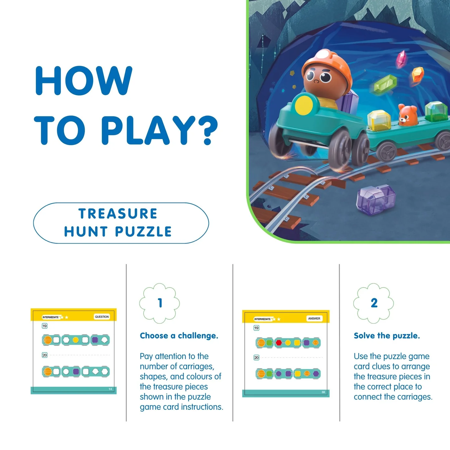 بازی فکری قطار معدن هولی، چالش های این بازی در 4 سطح تقسیم بندی شده.1 تا 12 آسان.13 تا 24 متوسط.20 تا 36 سخت.37 تا 48 حرفه ای.اسباب بازی از پلاستیک مرغوب و بهداشتی و ضد حساسیت تهیه شده.دارای قطار و چند تکه الماس رنگارنگ میباشد.