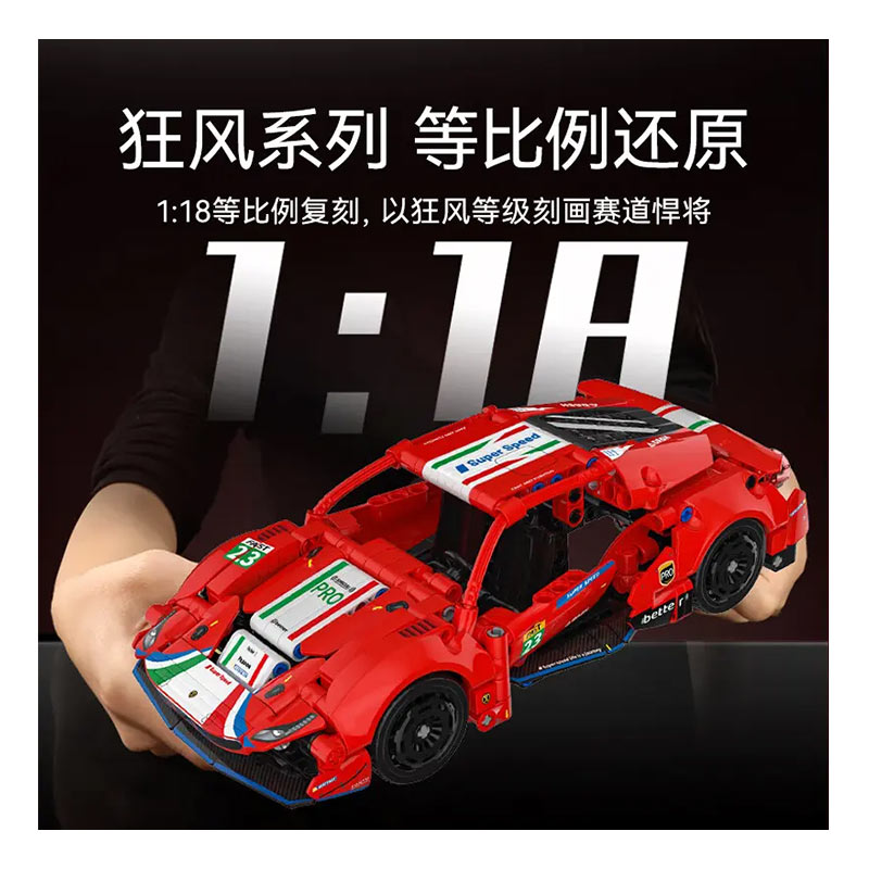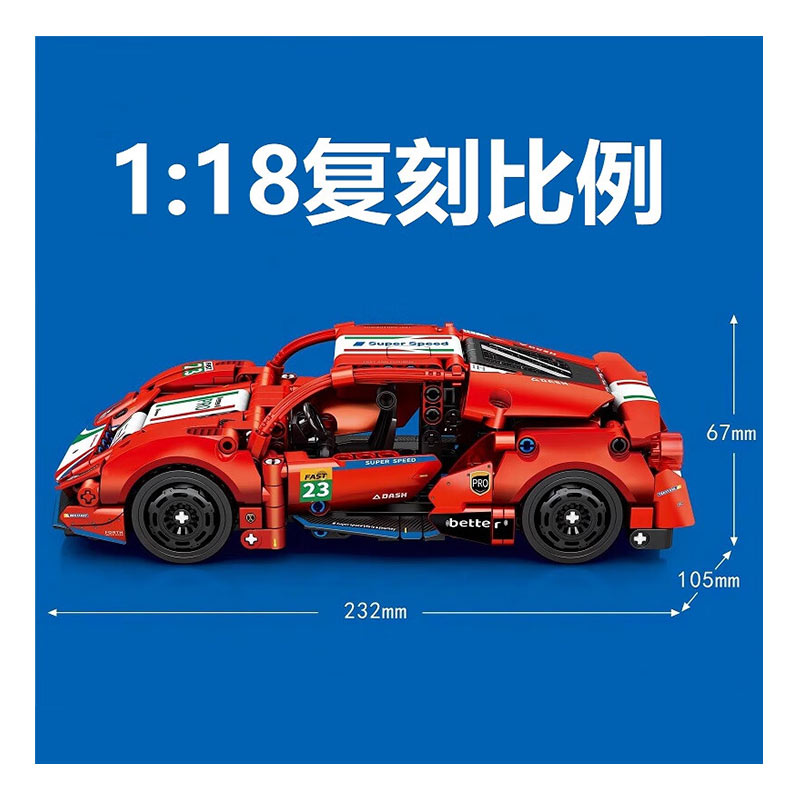 این مجموعه شامل 466 قطعه ساختنی است که با سرهم کردن آنها، یک ماشین مسابقه قرمز زیبا به ابعاد 23.2 سانتیمتر طول، 10.5 سانتیمتر عرض و 6.7 سانتیمتر ارتفاع ساخته میشود. طراحی دقیق قطعات و رنگ قرمز خاص این ماشین، حس واقعی یک خودروی مسابقهای لوکس را برای کودکان به ارمغان میآورد.