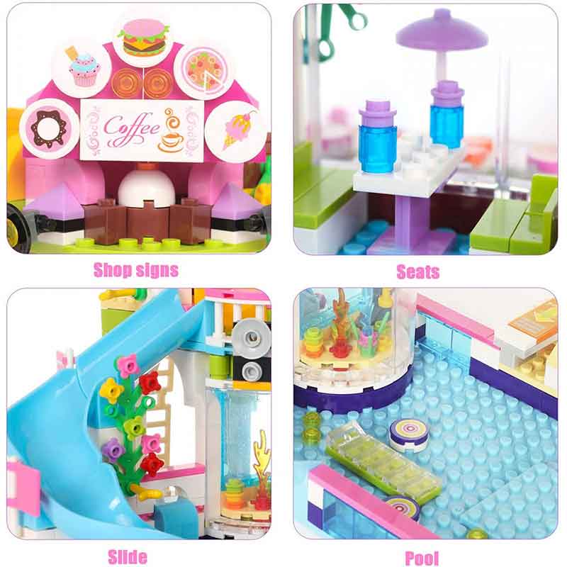 در این مجموعه، یک استخر بزرگ با سرسرهای هیجانانگیز، فضایی برای استراحت و آفتاب گرفتن، و حتی ماشینهای کوچکی برای گشت و گذار در اطراف استخر وجود دارد. شما میتوانید با استفاده از این قطعات، یک مهمانی استخری رویایی را برای شخصیتهای لگویی خود ترتیب دهید و ساعتها سرگرم بازی و ماجراجویی شوید.