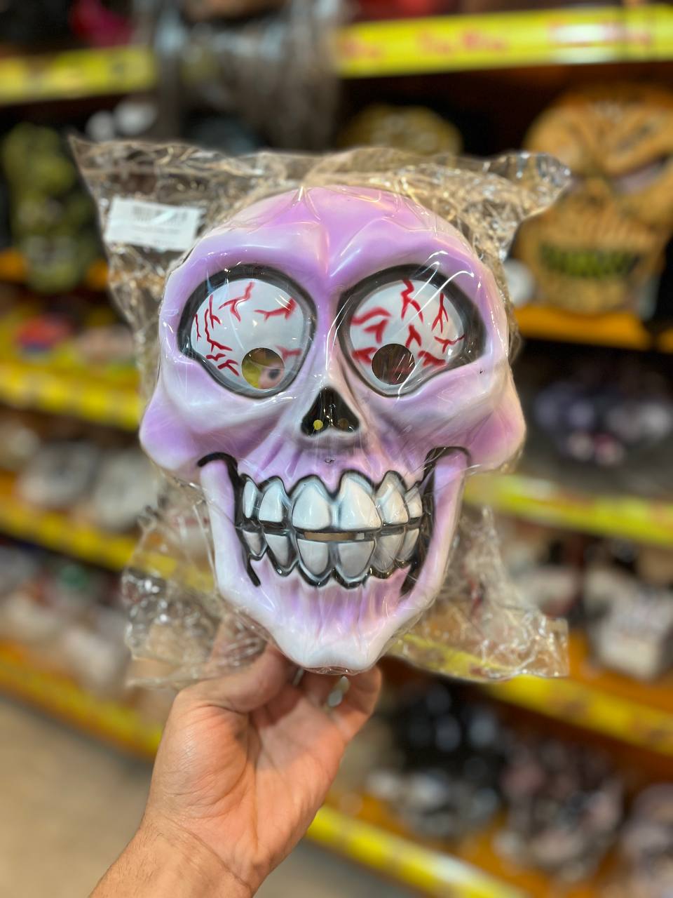 این ماسک اسکلتی با رنگ صورتی خاص خود، نه تنها ترسناک است، بلکه نوعی حس شوخطبعی را نیز به همراه دارد. چشمان از حدقه درآمده با رگهای خونی، دندانهای سفید و نمایان و جزئیات دقیق چهره، این ماسک را به یک اثر هنری تبدیل کرده است. میتوانید با خیال راحت این ماسک را در مهمانیها، جشنها و یا حتی برای شوخی با دوستان خود استفاده کنید.