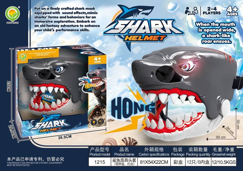 - جلوههای نوری و صوتی: با روشن شدن چراغهای تعبیه شده در ماسک و پخش صداهای مهیج کوسه، کودکان میتوانند تجربهای واقعیتر از حضور در اقیانوس را داشته باشند. وقتی دهان کوسه باز می شود، صدایی شبیه غرش کوسه پخش می شود
