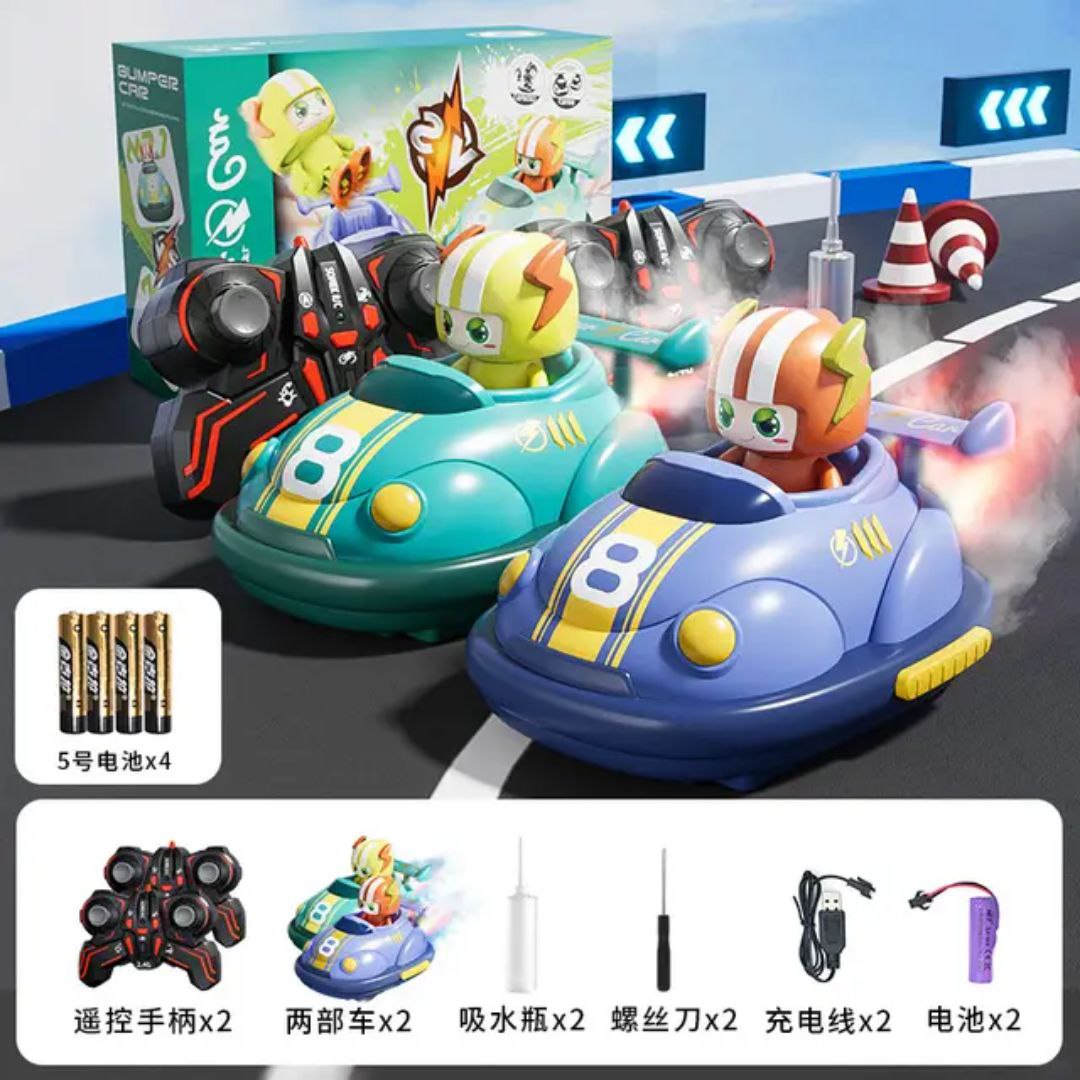 وارد میدان نبرد هیجانانگیز با ست ماشینهای کنترلی تصادفی شوید! این مجموعه شامل دو ماشین بامپر کار (Bumper Car) جذاب با قابلیت اسپری بخار و پخش موزیک است که تجربهای منحصر به فرد و سرگرمکننده را برای رقابتهای دوستانه فراهم میکند. ایدهآل برای کودکان و بزرگسالان جهت تجربهی یک نبرد سرگرمکننده و پر از خنده!