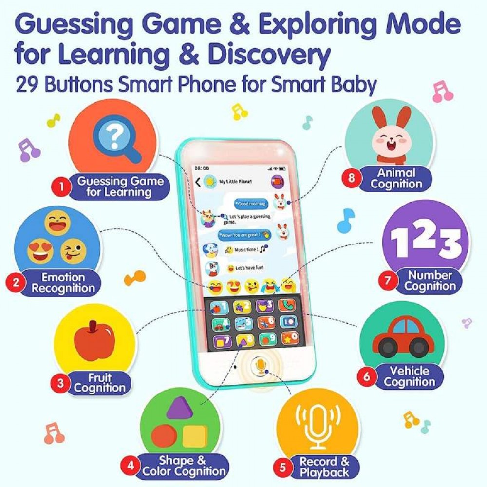 - تقویت مهارتهای شناختی: این موبایل با قابلیتهای مختلفی مانند ضبط صدا، تقلید صدا و تعامل، به تقویت حافظه، تمرکز و خلاقیت کودک شما کمک میکند.