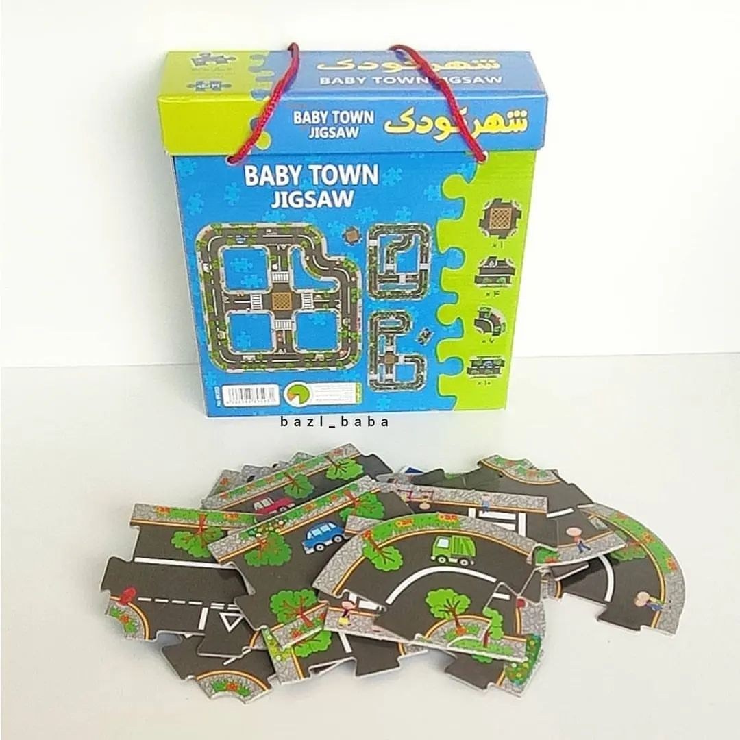 پازل شهر کودک پازل جعبه ای شهر کودک یک پازل فومی روکش شده بصورت یک شهر به همراه تمام اماکن مهمی که در شهر وجود دارد، است. کودک می تواند با استفاده از این بازی و سایر اسباب بازی های خود مانند ماشین ، عروسک و … ساعت ها سرگرم شود و در کنار آن قوانین راهنمایی ورانندگی و آداب شهروندی را بیاموزد این بازی در بالا رفتن قدرت تخیل کودک نیز بسیار موثر است .