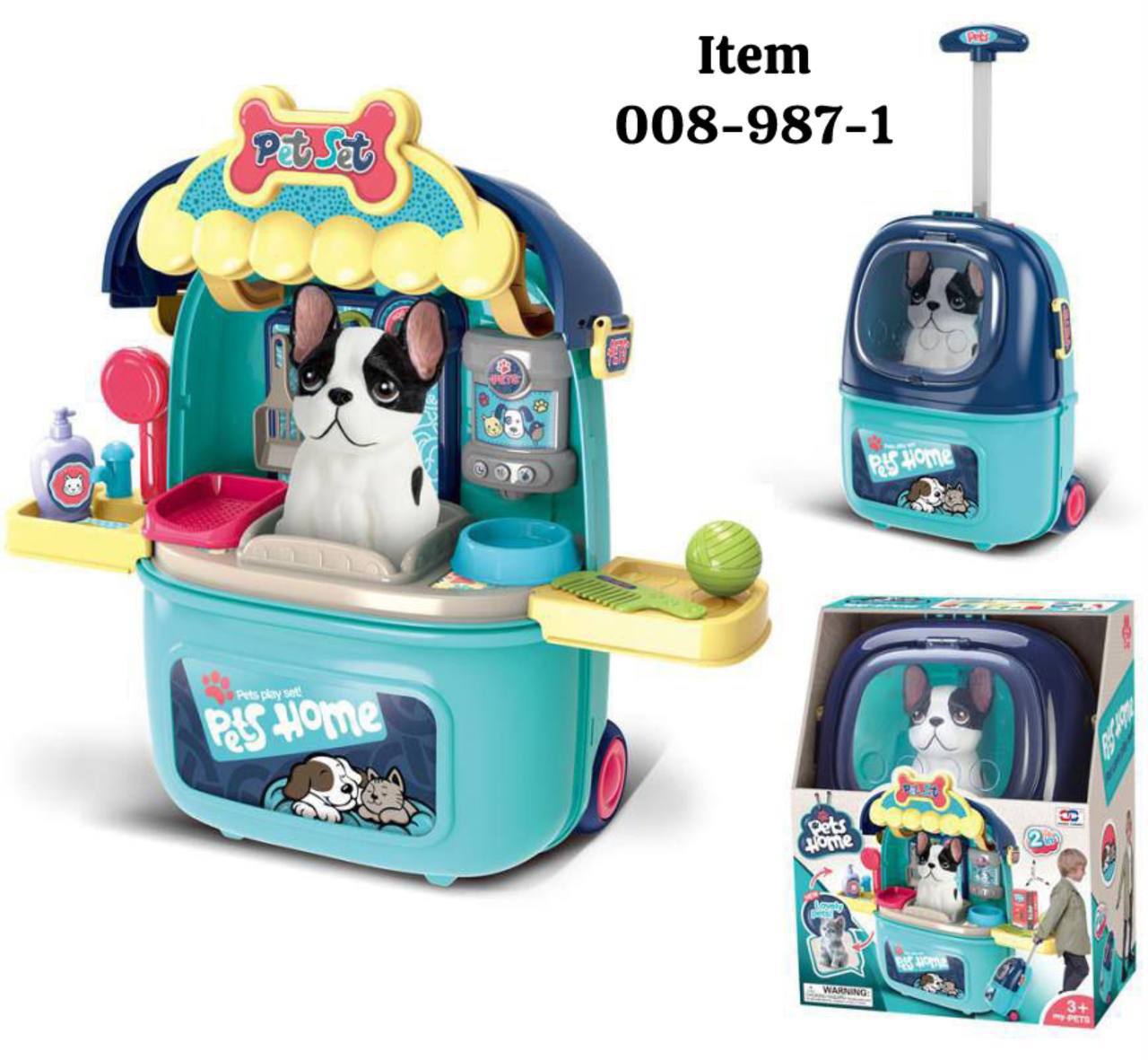 درون این پت باکس، یک سگ عروسکی دوست داشتنی و ملزومات مراقبت از حیوانات خانگی شامل برس، شانه، بطری شامپو و سایر وسایل ضروری وجود دارد. کودکان می توانند با استفاده از این وسایل، سگ خود را تیمار کرده و به او غذا بدهند.