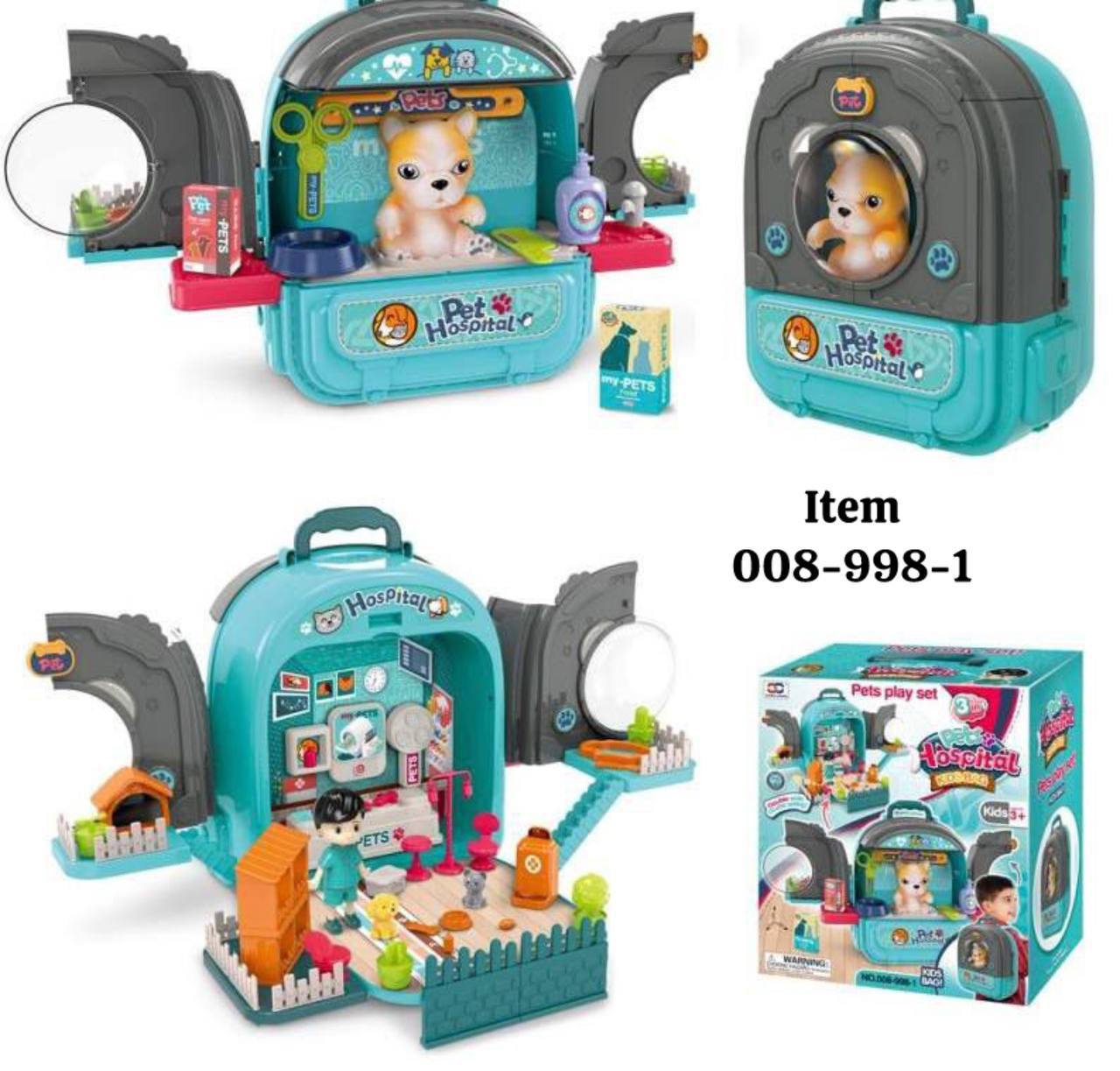 این پت باکس که به شکل یک کوله پشتی آبی رنگ زیبا طراحی شده است، به راحتی قابل حمل بوده و کودک شما می تواند آن را همه جا با خود ببرد. با باز کردن کوله پشتی، یک بیمارستان کوچک مخصوص سگ ها را کشف خواهید کرد که شامل وسایل معاینه، دارو و تجهیزات پزشکی است.