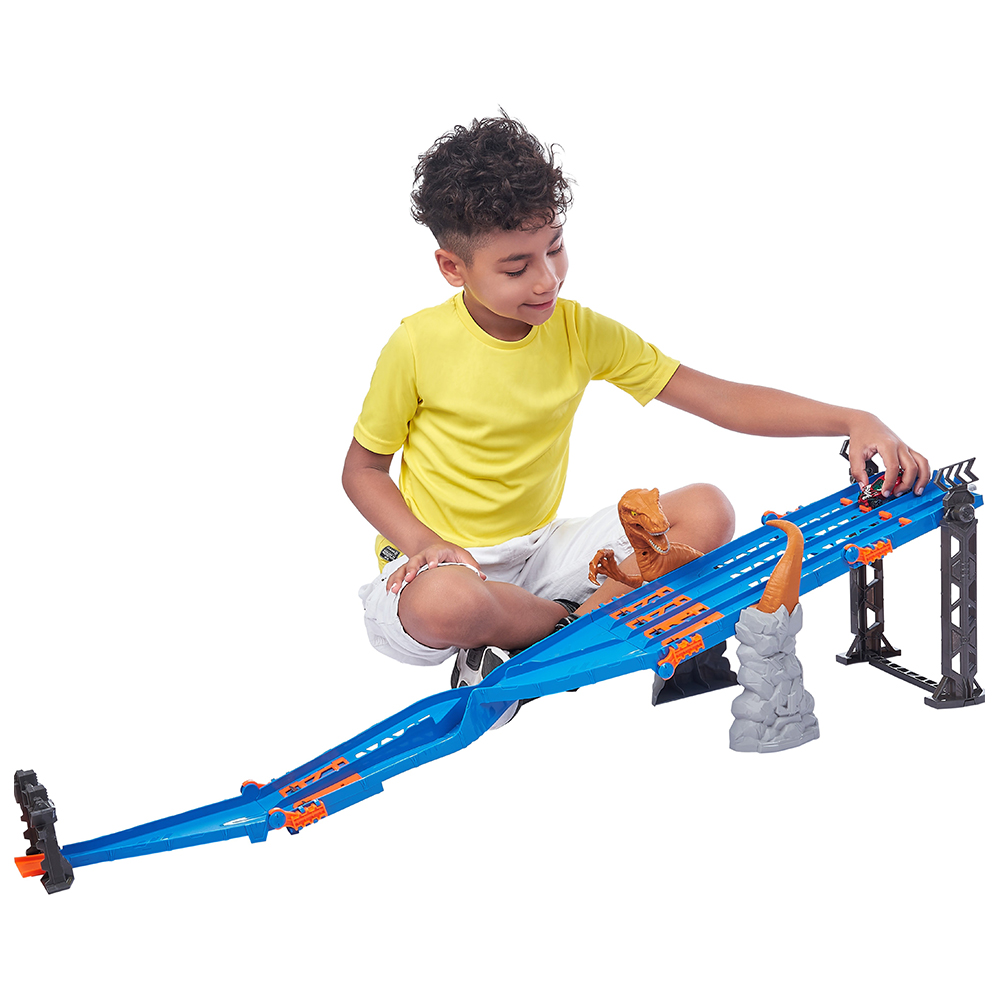 اسباب بازی ریسینگ بزرگ مدل دایناسور دارای 4 مسیر به هم چسبیده برای قرار دادن 4 ماشین اسباب بازی به صورت همزمان بر روی آن میباشد.
