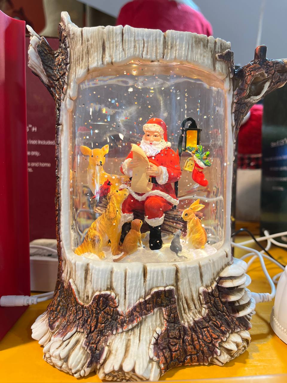 این چراغ خواب زیبا، با طراحی دقیق و ظریف، تنه درختی را به تصویر میکشد که داخل آن، یک کره شیشهای با منظرهای زمستانی قرار دارد. در این منظره، بابانوئل مهربان با لیستی در دست، در کنار حیوانات جنگلی دوستداشتنی نشسته است. جزئیات دقیق و رنگهای گرم به کار رفته در این صحنه، حس آرامش و دلنشینی را به بیننده القا میکند.