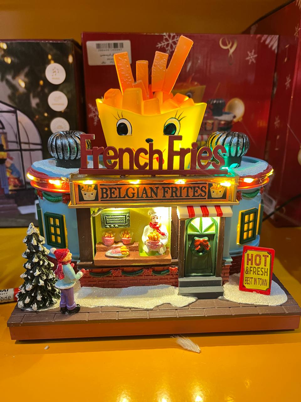 این چراغ خواب نه تنها یک وسیله روشنایی است، بلکه یک اثر هنری است که با ظرافت طراحی شده است. از سرآشپز کوچکی که در حال آماده کردن سیب زمینی سرخ کرده است، تا چراغهای رنگارنگی که نمای فروشگاه را تزئین کردهاند، هر جزئیات این چراغ خواب، شما را به دنیایی فانتزی و شاد میبرد.