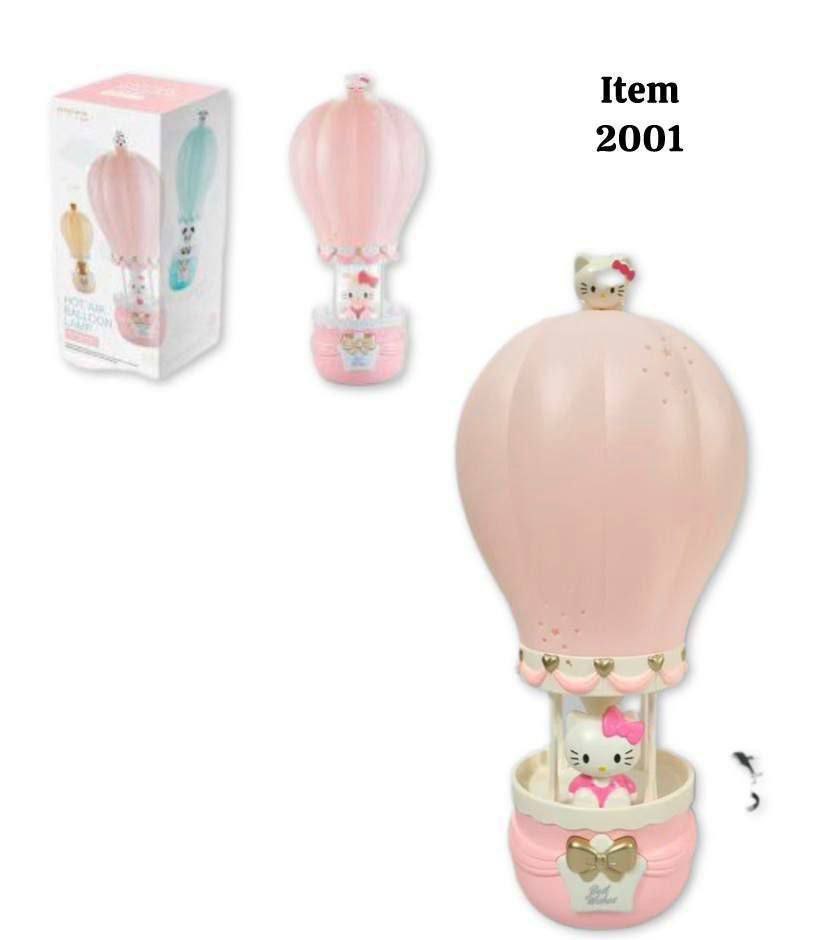 چراغ خواب کیتی 2001 با شکل یک بالون هوای گرم طراحی شده است که کیتی دوستداشتنی در سبد آن نشسته است. این طراحی خلاقانه و رنگ صورتی ملایم آن، حس لطافت و شادی را به فضا القا میکند. جزئیات دقیق و با ظرافت این چراغ خواب، آن را به یک اثر هنری کوچک تبدیل کرده است که هر کودکی را مجذوب خود میکند.