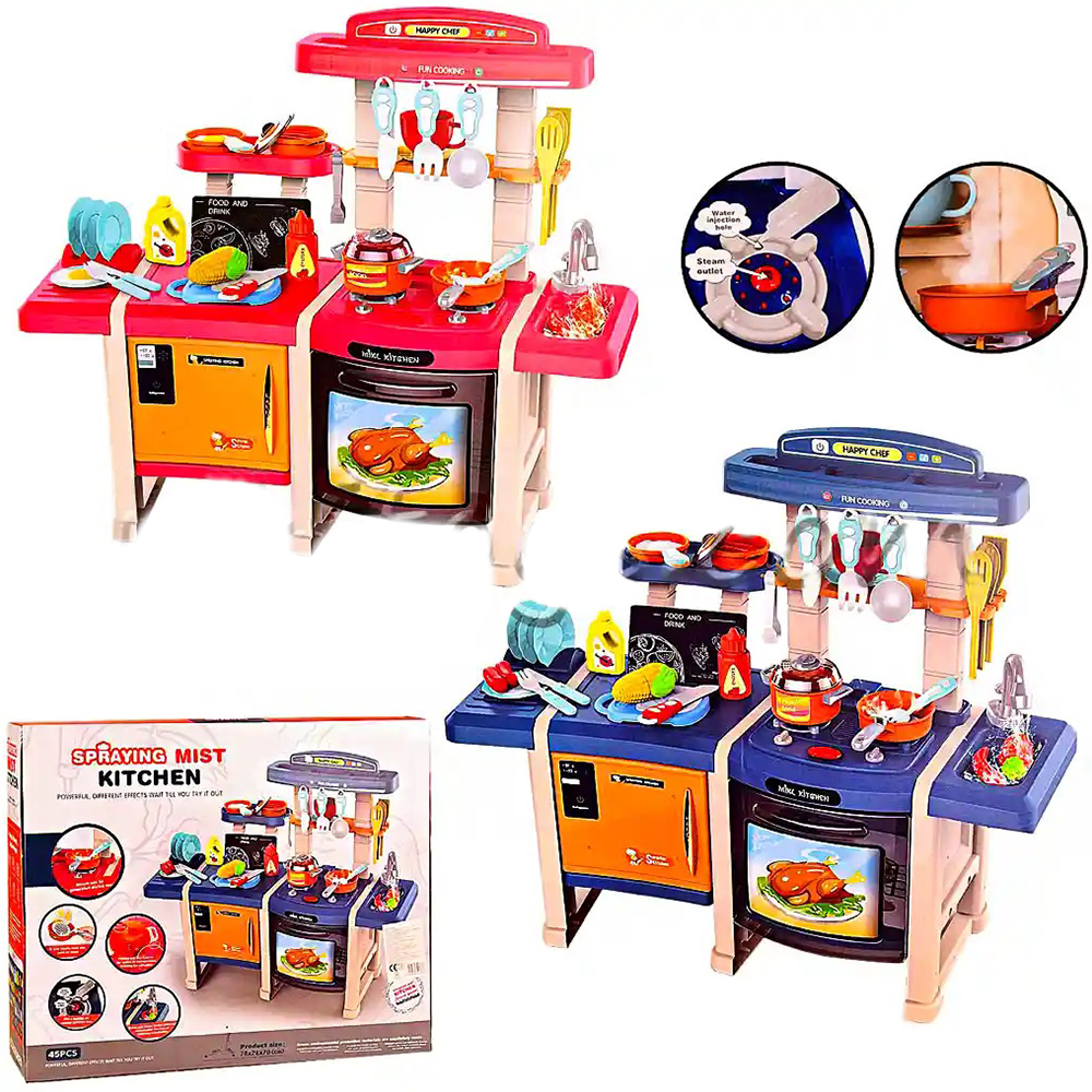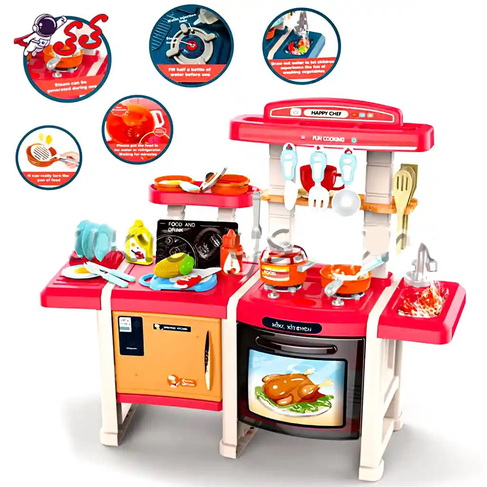 این محصول یک مجموعه اجاق گاز و آشپزخانه با وسایل آشپزی برای کودک در ابعاد بزرگ است که علاوه بر نور و صدا دارای قابلیت پخش بخار را نیز دارد.